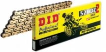 Новое поколение кроссовой цепи D.I.D 520DZ2 имеет лучшие показатели, такие как легкий вес и высокая износостойкость. Данные цепи разрабатывались специально для участия в соревнованиях по мотокроссу. 520DZ2 рекоммендовано использовать для мотоциклов с объемом двигателей не более 450сс. Срок службы 520DZ2 вдвое больше чем у предыдущей модели 520DZ. Технология SDH - высокотехнологичный способ обработки, который заключается в покрытии пальца карбидом хрома - очень твердым химическим покрытием, стойким к жидкостям и истиранию.