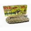 Внешние пластинцы цепи с золотистым покрытием, внутренние пластины темные. Цепь имеет ширину 520 и прочность на разрыв 3 650 кг / 8 210 фунтов. Техническая спецификация цепи DID VX2 520: