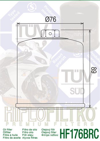 HIFLO FILTRO HF176BRC - фильтр масляный HARLEY DAVIDSON RH 975 / S NIGHTSTER / SPECIAL 2022-2024, RA 1250 / S PAN AMERICA / SPECIAL 2022-2024, RH 1250 S SPORTSTER 2022-2024 (OEM: 62700280)