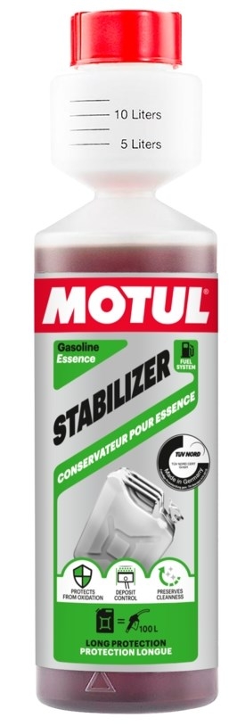 - перед зимнем хранением, запустите двигатель на бензине со средством MOTUL STABILIZER, чтобы обеспечить защиту от коррозии внутри топливной системы двигателя.